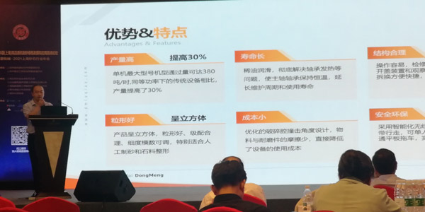 現(xiàn)場(chǎng)主題演講環(huán)節(jié),上海東蒙高級(jí)應(yīng)用工程師嚴(yán)剛受邀現(xiàn)場(chǎng)發(fā)表《履帶移動(dòng)沖擊式破碎站在市場(chǎng)上的應(yīng)用》主題演講。針對(duì)東蒙履帶移動(dòng)沖擊式破碎站產(chǎn)品特點(diǎn)及優(yōu)勢(shì)、國(guó)內(nèi)外機(jī)制砂市場(chǎng)需求特點(diǎn)及未來(lái)發(fā)展趨勢(shì)作了系統(tǒng)的專(zhuān)業(yè)分析及重點(diǎn)闡述。
